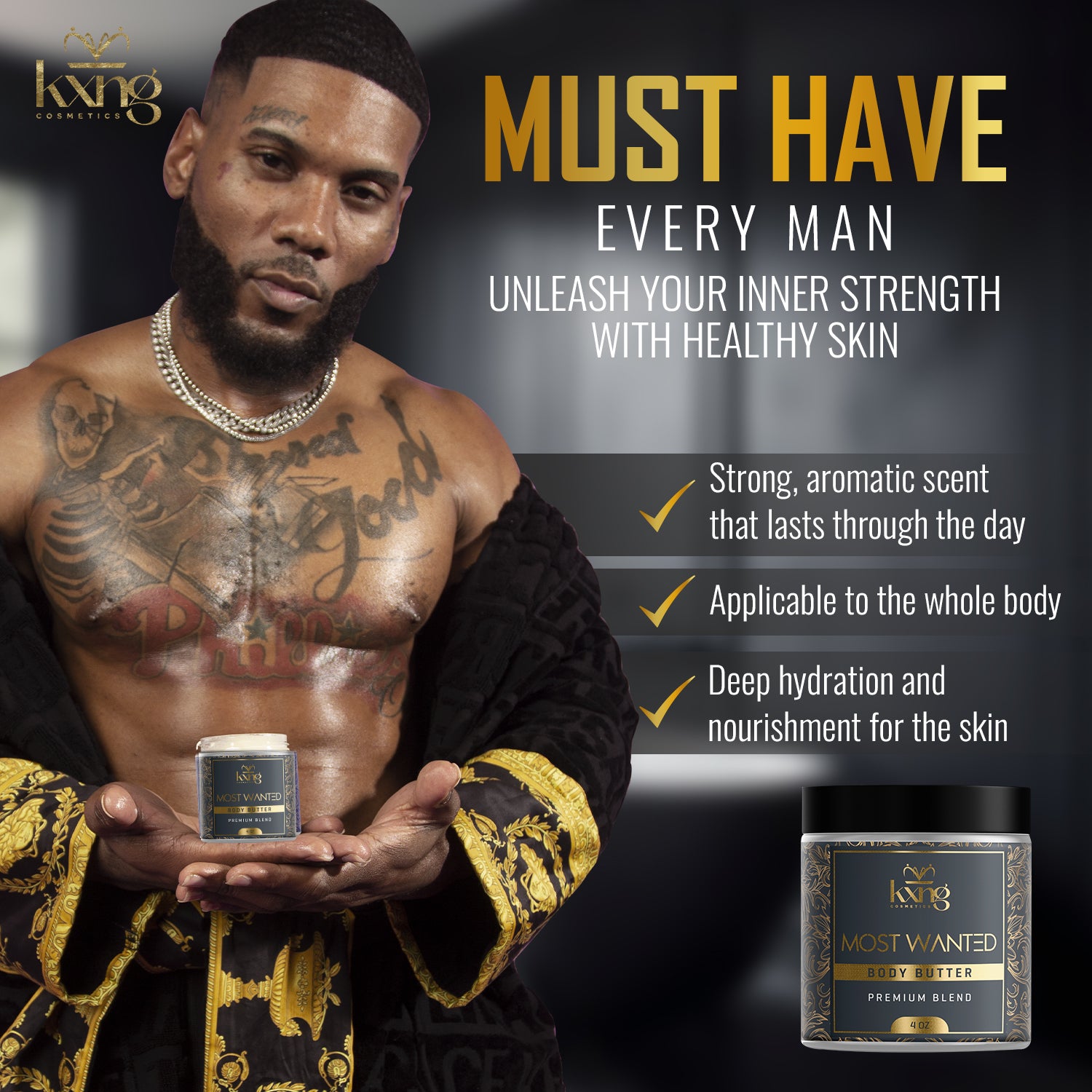 KXNG Cosmetics Body Butter - Organic Moisturizer for Men and Women (Most Wanted)