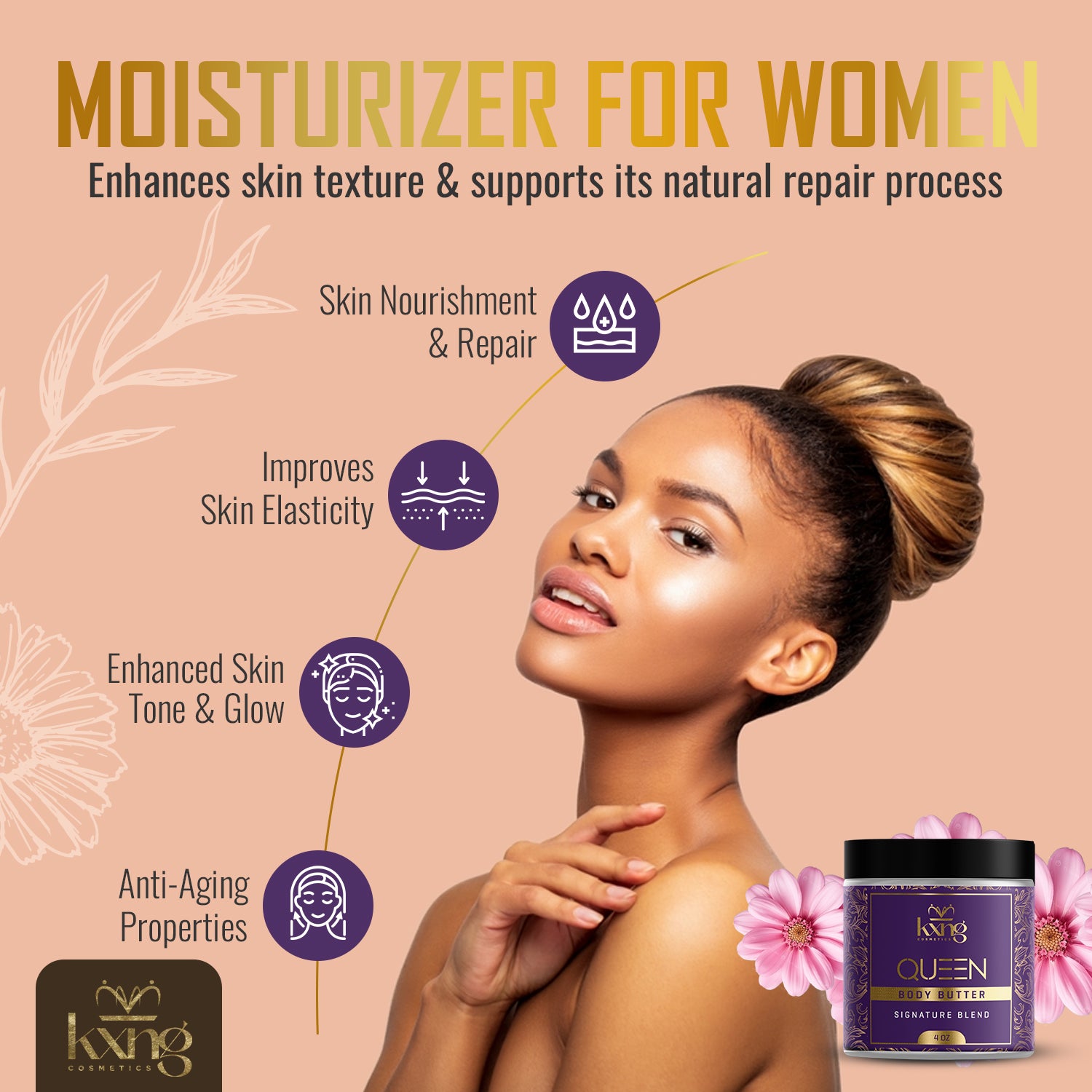 Our cruelty-free, vegan formula harnesses the power of organic botanicals to provide unparalleled moisturizing benefits. Whether you're looking for a daily body lotion, a deep nourishing serum, or a multi-purpose beauty solution, our body butter delivers exceptional results. Elevate your skincare routine with KXNG Cosmetics, where luxurious, organic body care meets the nourishing power of nature. Give your skin the royal treatment it deserves and experience the difference of our premium, all-natural formula.